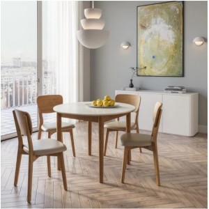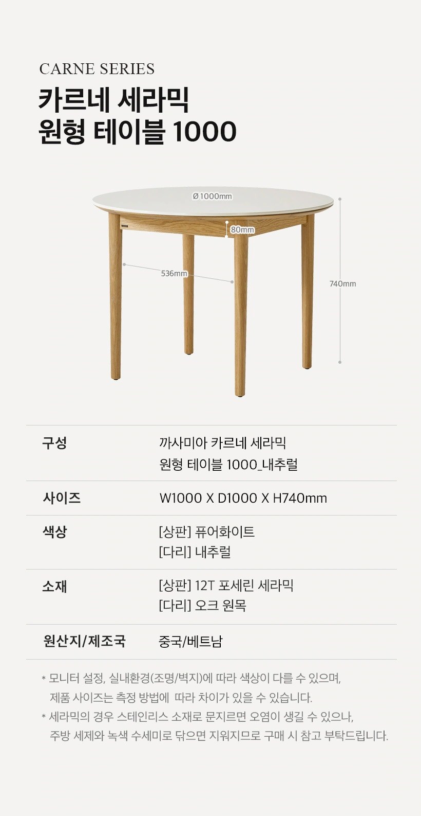 까사미아 카르네 세라믹 원형 테이블 1000 + 가죽체어 4p 방문설치