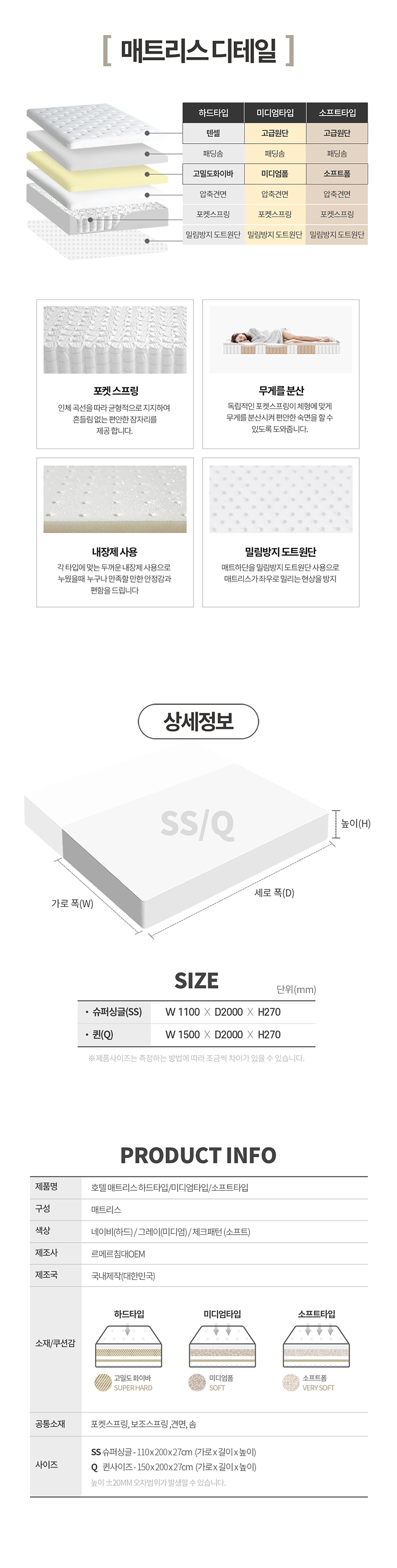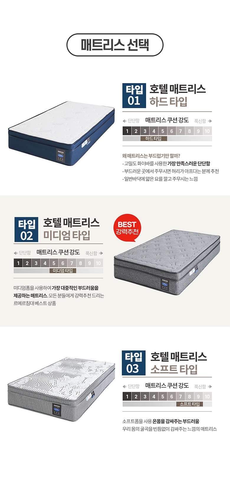 호텔 매트리스에 누우면 은근 편하고 좋잖아요. 이것도 왜 호텔 매트리스라고 그러는건지 알겠어요.
