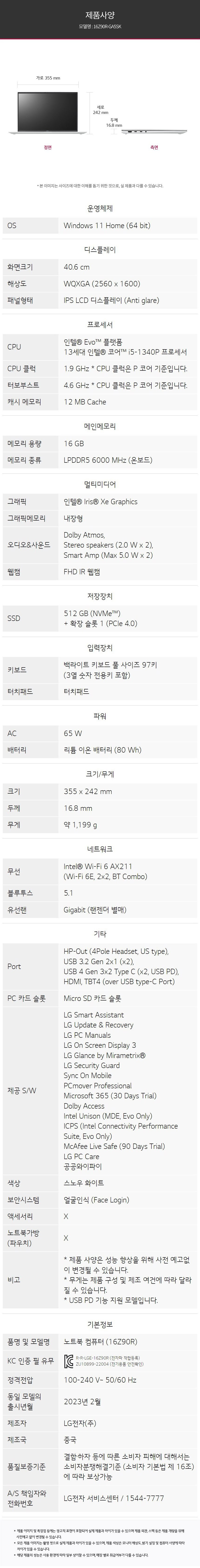 LG전자 2023 그램16 코어i5 인텔 13세대