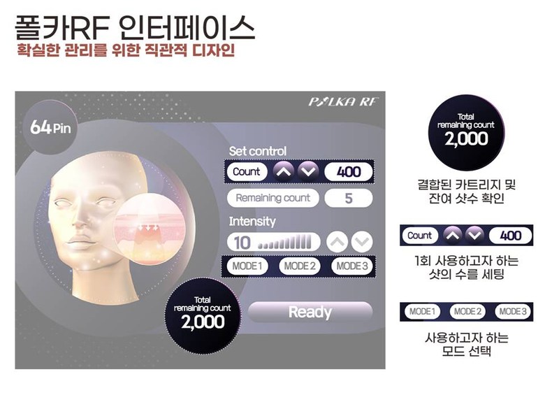 폴카 RF 피부관리 기기 프락셀 고주파 프락셔널 피부 관리기 프락셀 피부재생 콜라겐생성 리프팅 노화 눈가주름 - 한국