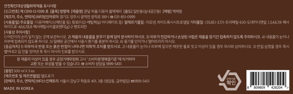 코코도르 프리미엄 디퓨저 500ml x 3p + 섬유스틱 21P