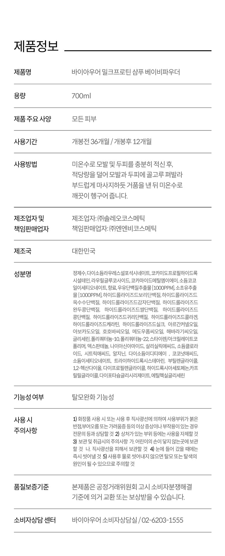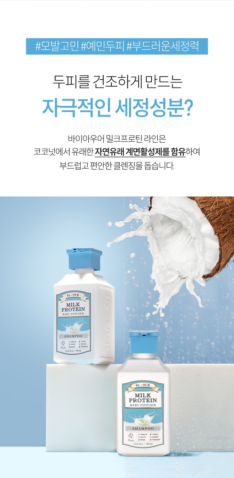 바이아우어 밀크 프로틴 샴푸 베이비 파우더향 2개
