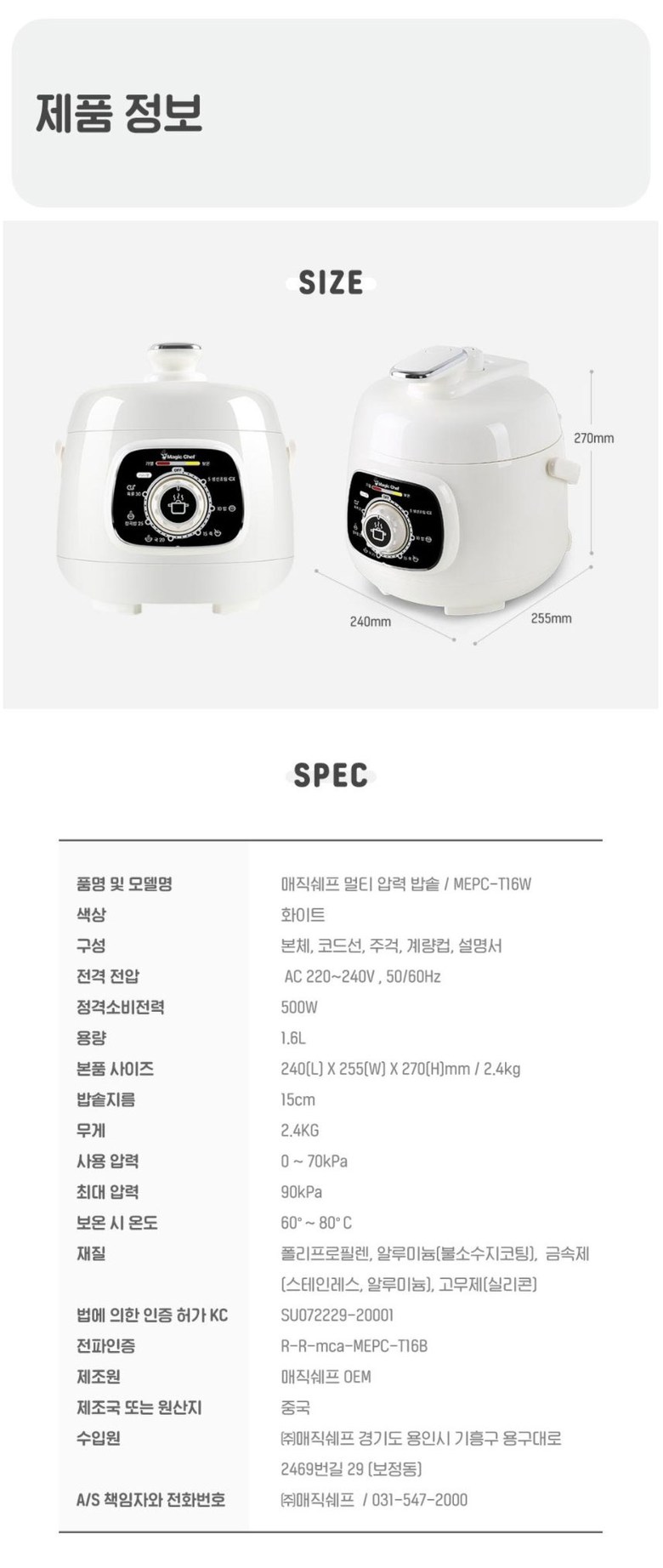 매직쉐프 초고속 미니 멀티 압력밥솥