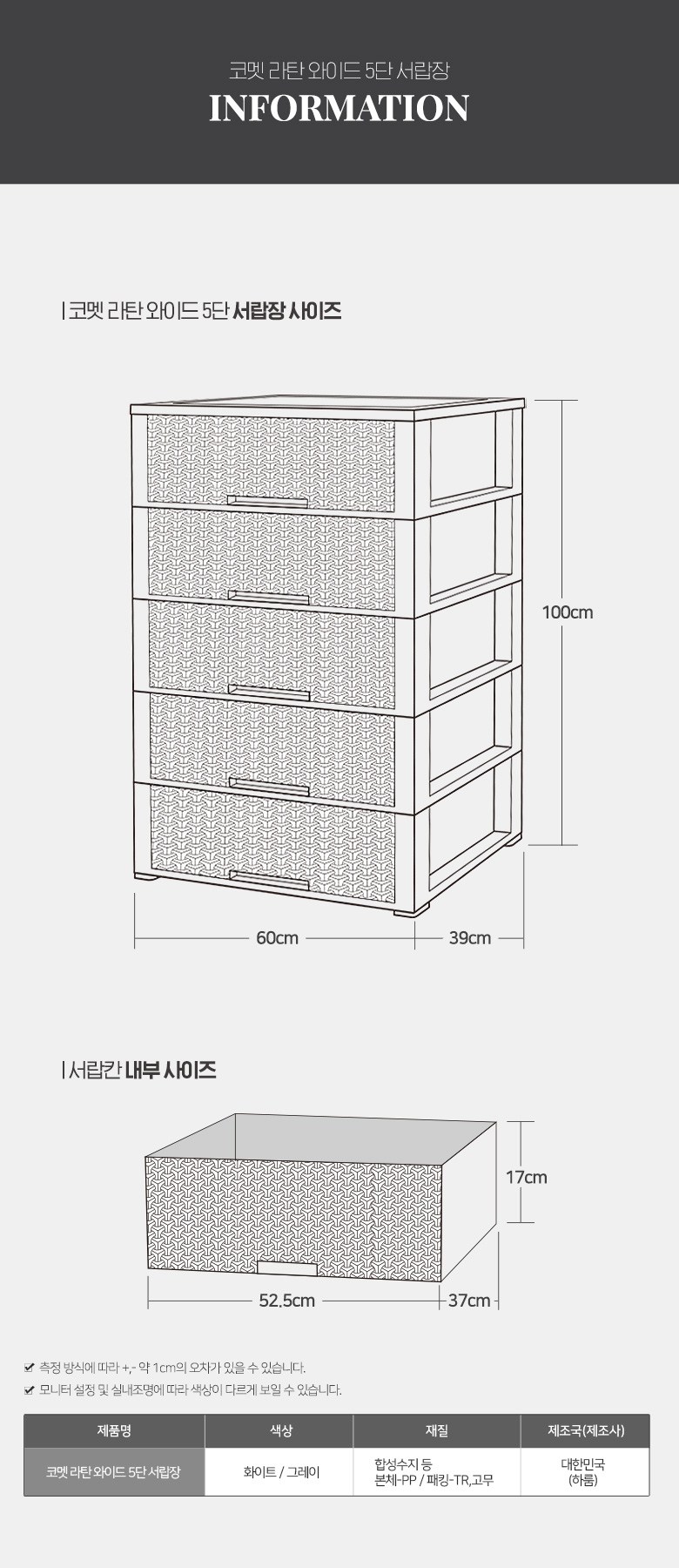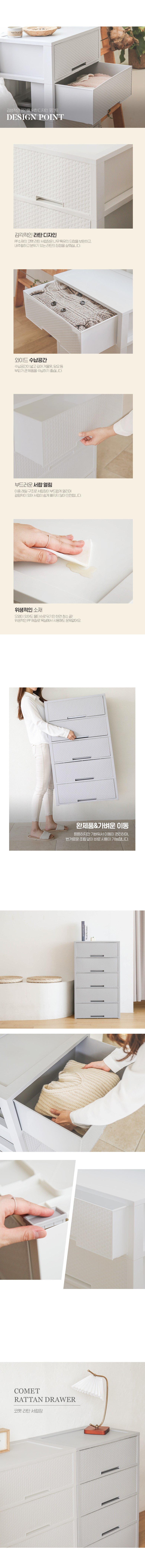 코멧 5단 라탄 서랍장 와이드 600, 화이트